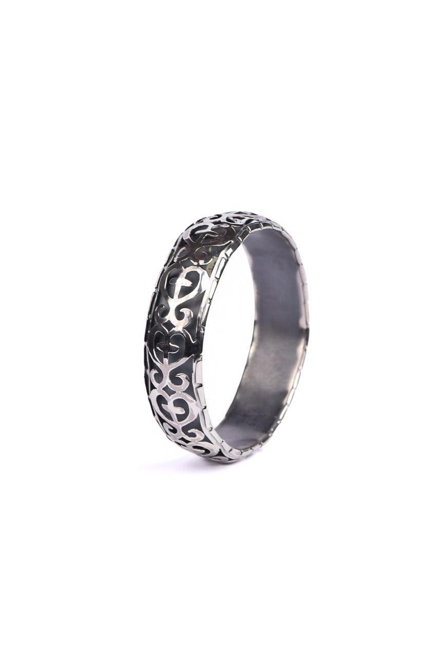 Gümüş plaka ajur motif olarak kesilmiş altına astarla birleştirilmiş bilezik formuna getirilmiştir.